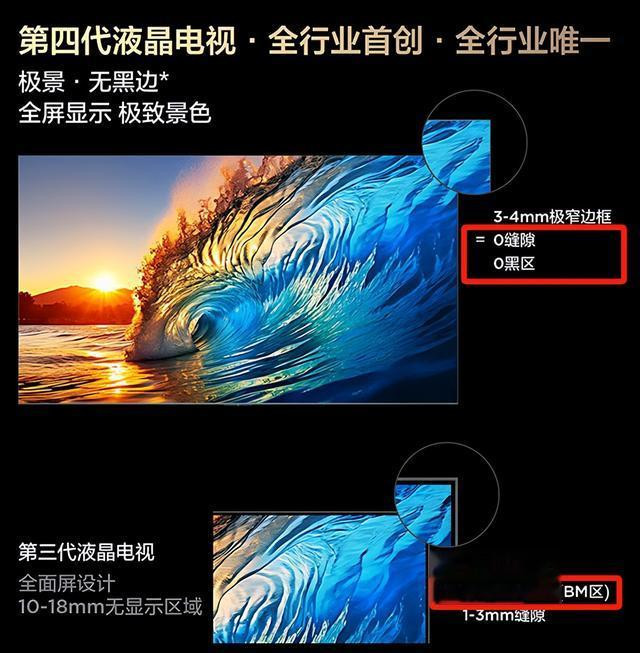传统旗舰电视始终甩不掉“画框感”,因为技术瓶颈的原因,无显示的区域(我们俗称黑边)一直都很明显,无法带来震撼的视觉冲击。